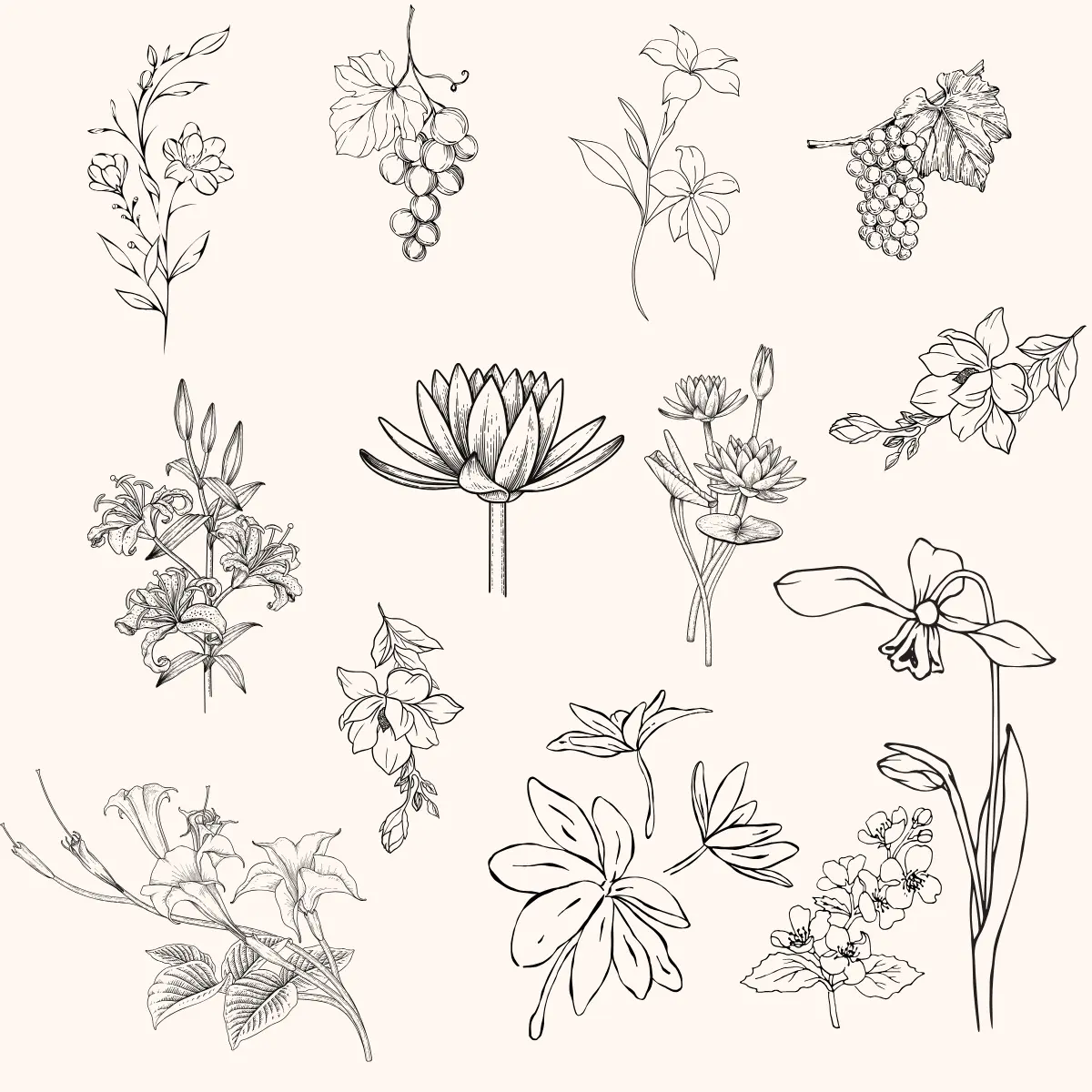 One day, late at night, with the world quiet and still, I began experimenting. I Tested combinations of lines, shapes, and proportions, letting instinct guide the way. I gathered everything that spoke to my heart: old botanical illustrations with their fine, delicate strokes, organic humble shapes to evoke a sense of nature, baroque frames rich with history, Victorian curves full of romance, and rustic forms that felt grounded and real.